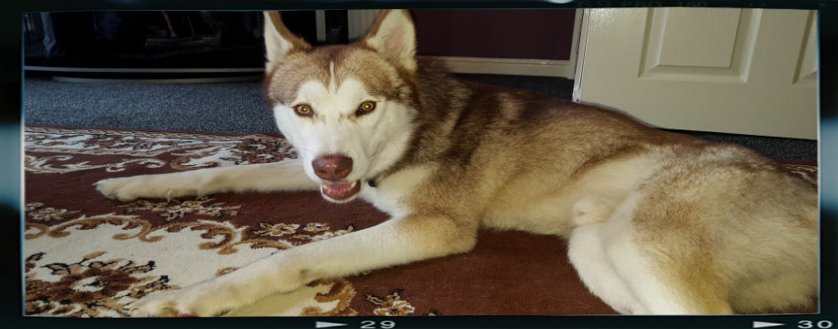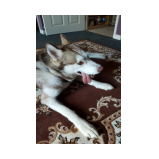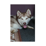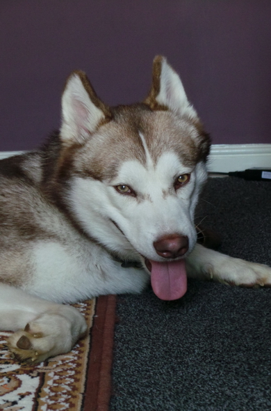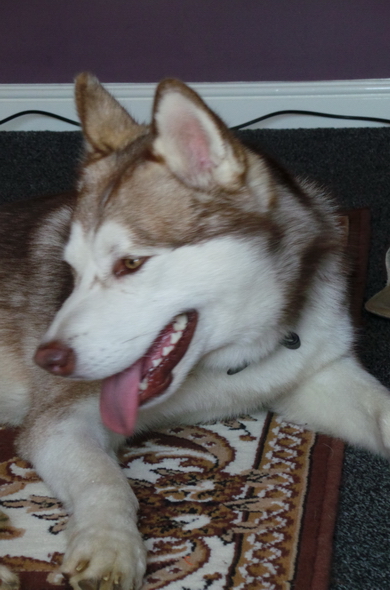 Zeus...He is 18 month old, such a lively and energetic Alaskan Malamute but very beautiful. Always wants to be with me and he loves all his cuddles and belly rubs. Seems very happy in such a short time, only been with us less than a month.